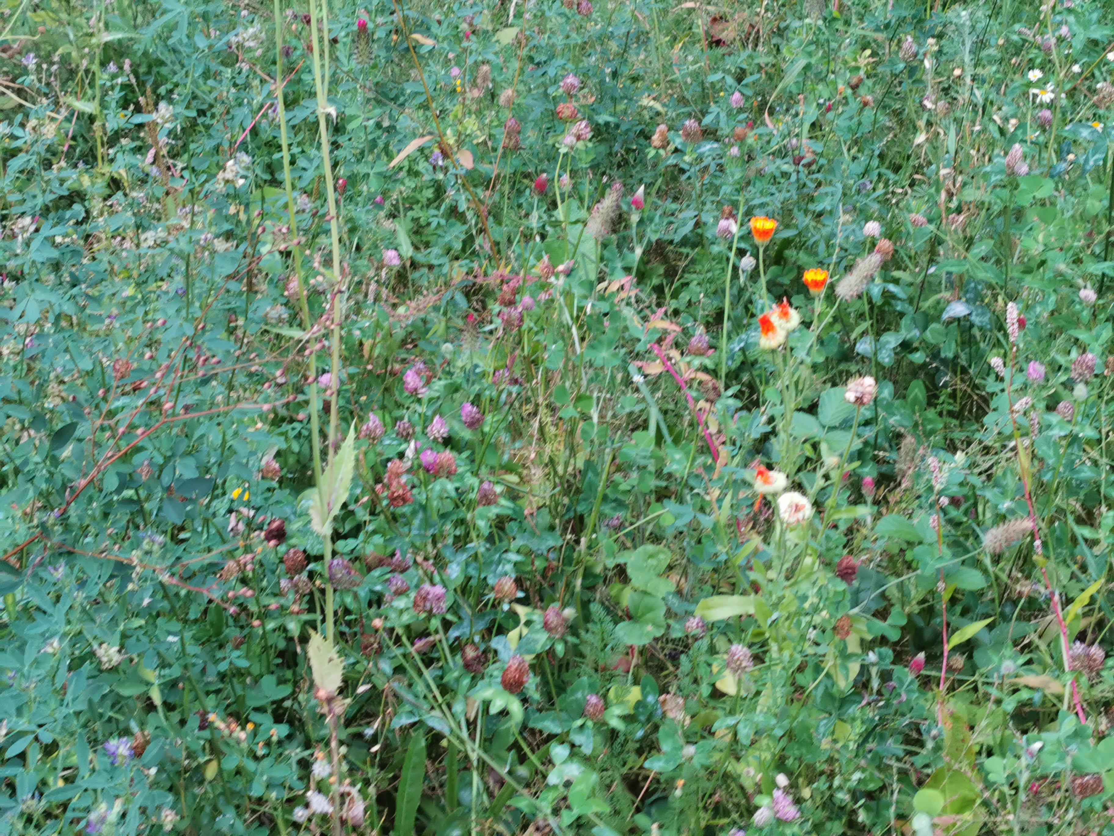 Zentrale Maßnahme ist die Anlage einer Blühwiese mit regionalem Saatgut. Dazu wurde der Boden nach dem Freiräumen in Eigenleistung mit Sand abgemagert. Das ganze Gelände ist von einem Staketenzaun umgeben, damit die Rehe die Blüten nicht gleich wieder vernichten und der Platz auch von unseren Gästen nicht als Spielplatz genutzt wird. Neben einigen Gräsern enthält die Mischung auch Leguminosen wie Rotklee und blühende Kräuter wie Lichtnelke, Heiziest, Moschus-Malven, Wiesenbocksbart und viele mehr. Einige Bilder aus der letzten Blühperiode finden Sie unten.